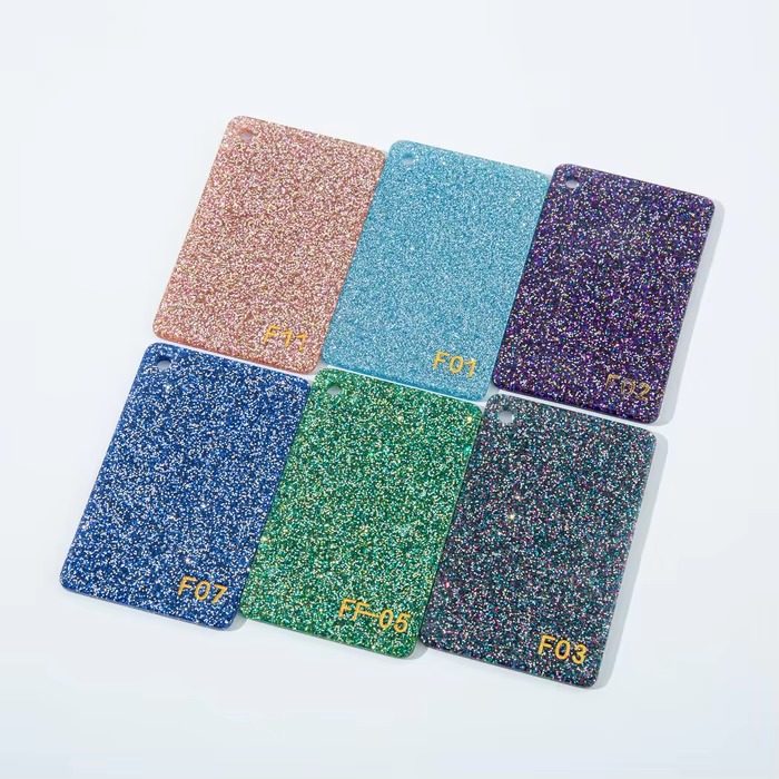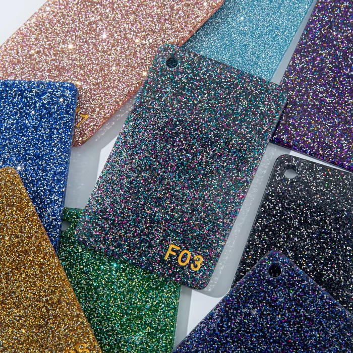 3mm UV Glitter Cast Acrylic Sheets 600*1000mm Wholesale Marble Patterned Chunky Glitter with Cutting Service for Laser Cutting