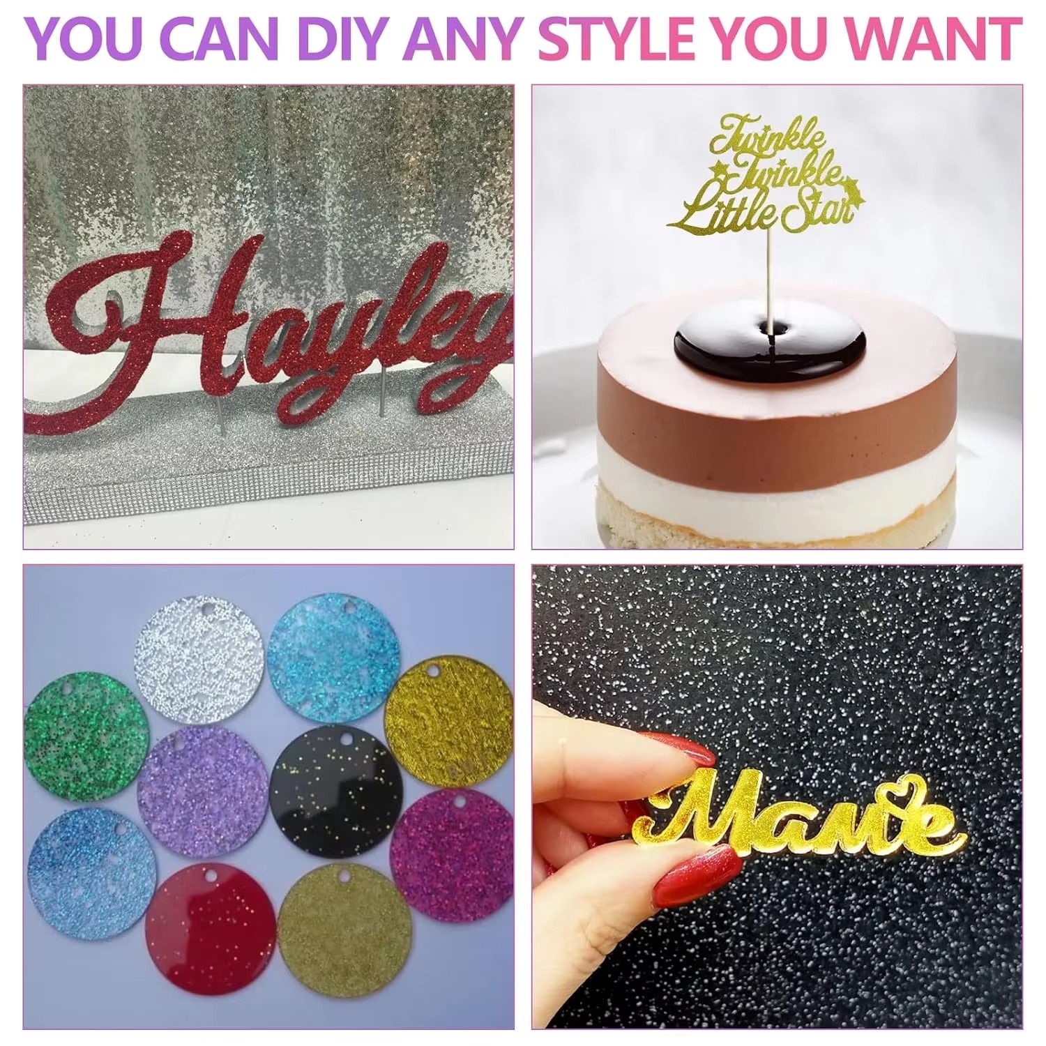 CHEERFOR 8x8 Inch 3mm Glitter Acrylic Sheets for Laser Cutting Engraving & CNC for Advertising Signs & Holiday Decorations
