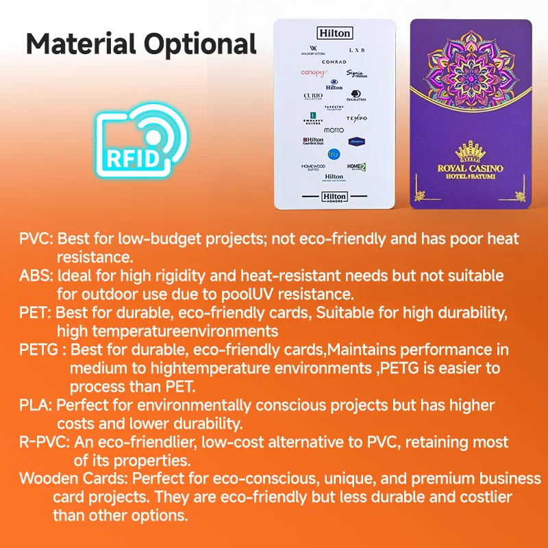 Waterproof / Weatherproof: Ensures durability in varied environments. RFID, NFC Technology: Supports contactless access control and identification. Wide Compatibility: Works seamlessly with multiple systems and devices. Customizable Options: Personalize according to specific needs. Extensive Applications: Ideal for membership cards, business cards, and more.