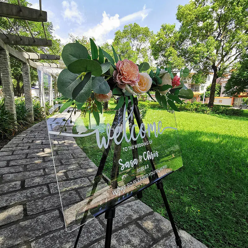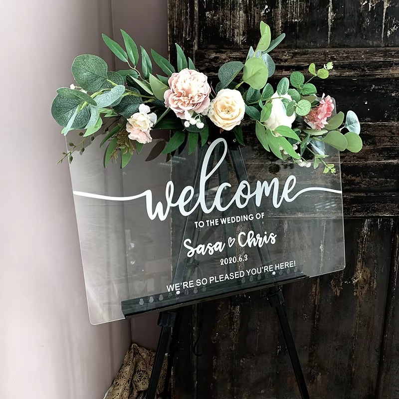 Customizable Clear Acrylic Wedding Sign Holder with UV Printing and 1 Color Welcome Sign for Wedding Decorations