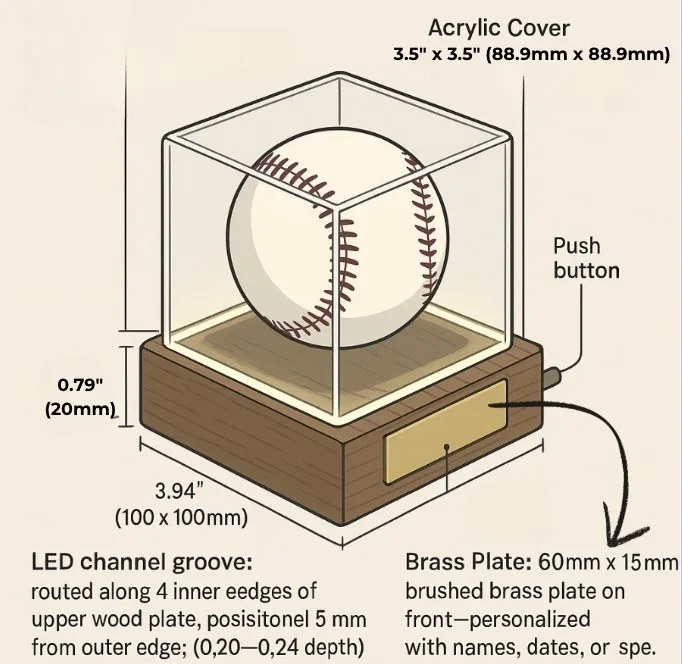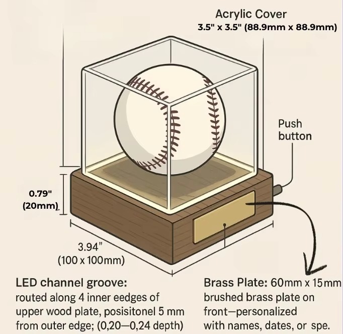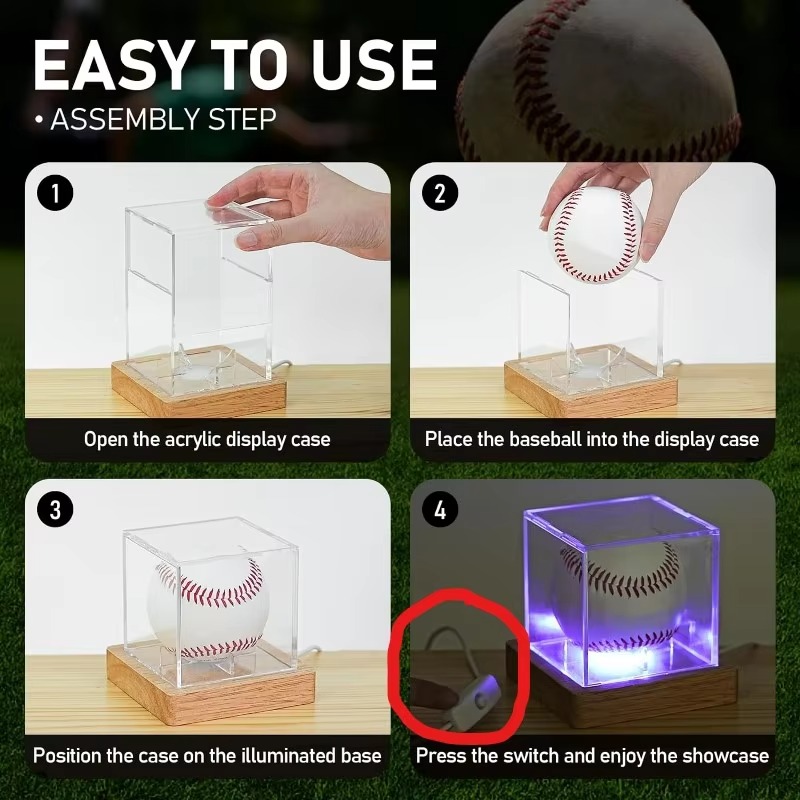 Neon Show Case for Base Ball Acrylic Plastic Sheets Display Case